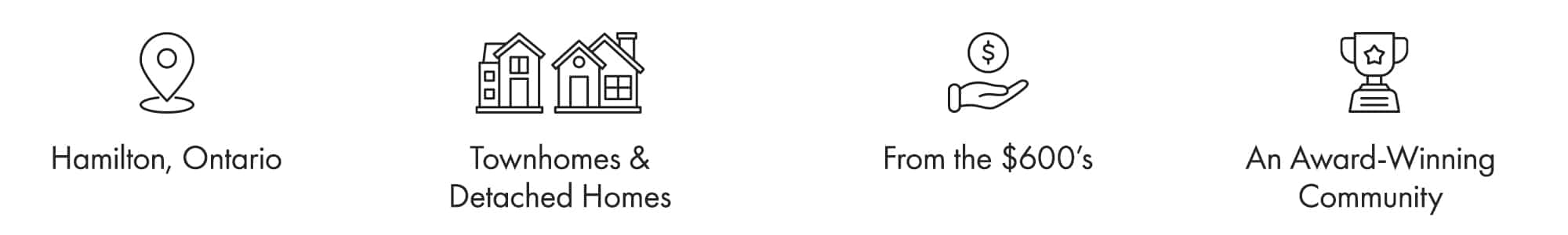 Family-sized 20’ freehold townhomes and functional 33’ & 36’ detached homes with optional 5 bedroom plans, finished basements, side door entrances, main floor dens, and up to 2-car garages. Experience the best of modern family living in Hamilton with close proximity to excellent schools, convenient shopping, worldly dining and cultural attractions.